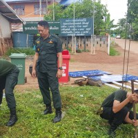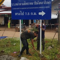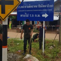 นักศึกษาวิชาทหารจิตอาสา ติดตั้งป้ายบอกทางโรงเรียน